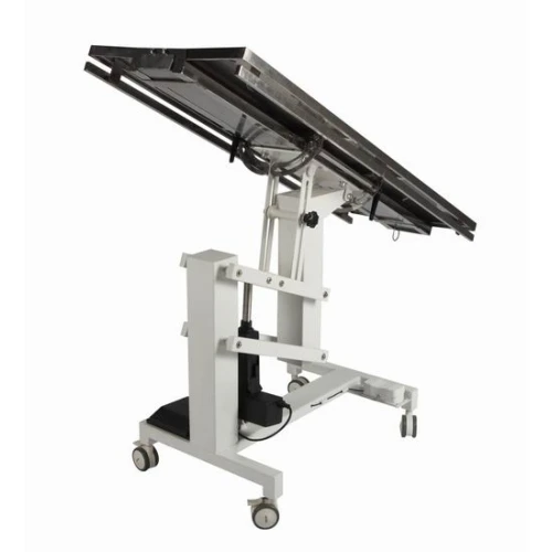 - A two panel system that adjusts from horizontal to near vertical to hold the pets in the desired position during surgery.