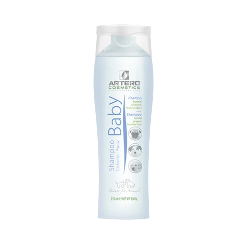 - Artero Baby Shampoo is designed for puppies aged 1 to 8 months. Their fur and skin tend to be more sensitive and require extra care as they are still in a developmental stage.