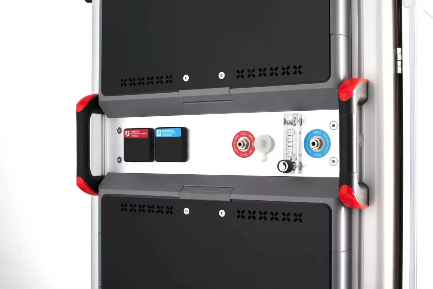 The first is an easy-to-use ultraviolet disinfection light. This light uses ultraviolet rays with a wavelength of 200nm to 280nm. Ultraviolet rays at this frequency have been proven to eradicate bacteria and effectively kill microbial cells. Second, each unit is equipped with negative ion purification. High-concentration negative ion generators in a closed treatment chamber can significantly reduce odor pollution and help support the immune system of your pet patients. As a third measure of purification, we have equipped the machine an external cycle fresh air system. When oxygen supply is not required in treatment, the “external cycle” function can be turned on to help refresh and improve the cabin air quality.