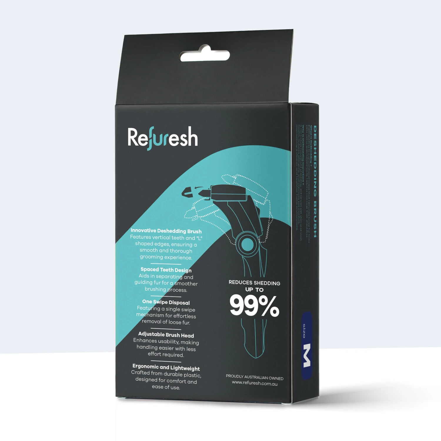 Innovative Deshedding Brush features vertical teeth and “L” shaped edges, ensuring a smooth and thorough grooming experience. Spaced teeth Design aids in separating and guiding fur for a smoother brushing process. One Swipe Disposal featuring a single swipe mechanism for effortless removal of loose fur. Adjustable Brush Head enhances usability, making handling easier with less effort required. Ergonomic and Lightweight crafted from durable plastic, designed for comfort and ease of use.