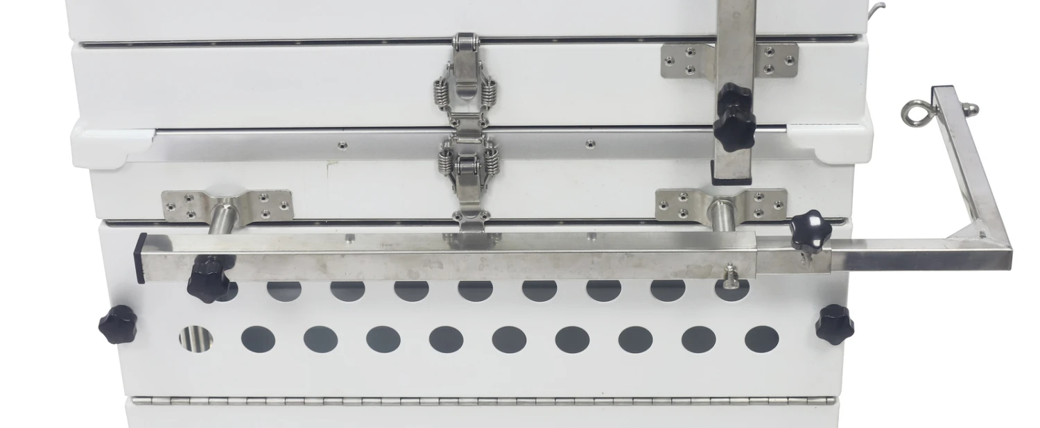 - Combination of 2 cages stack together with latch clip, safety buckle in place to join cages to the trolley.