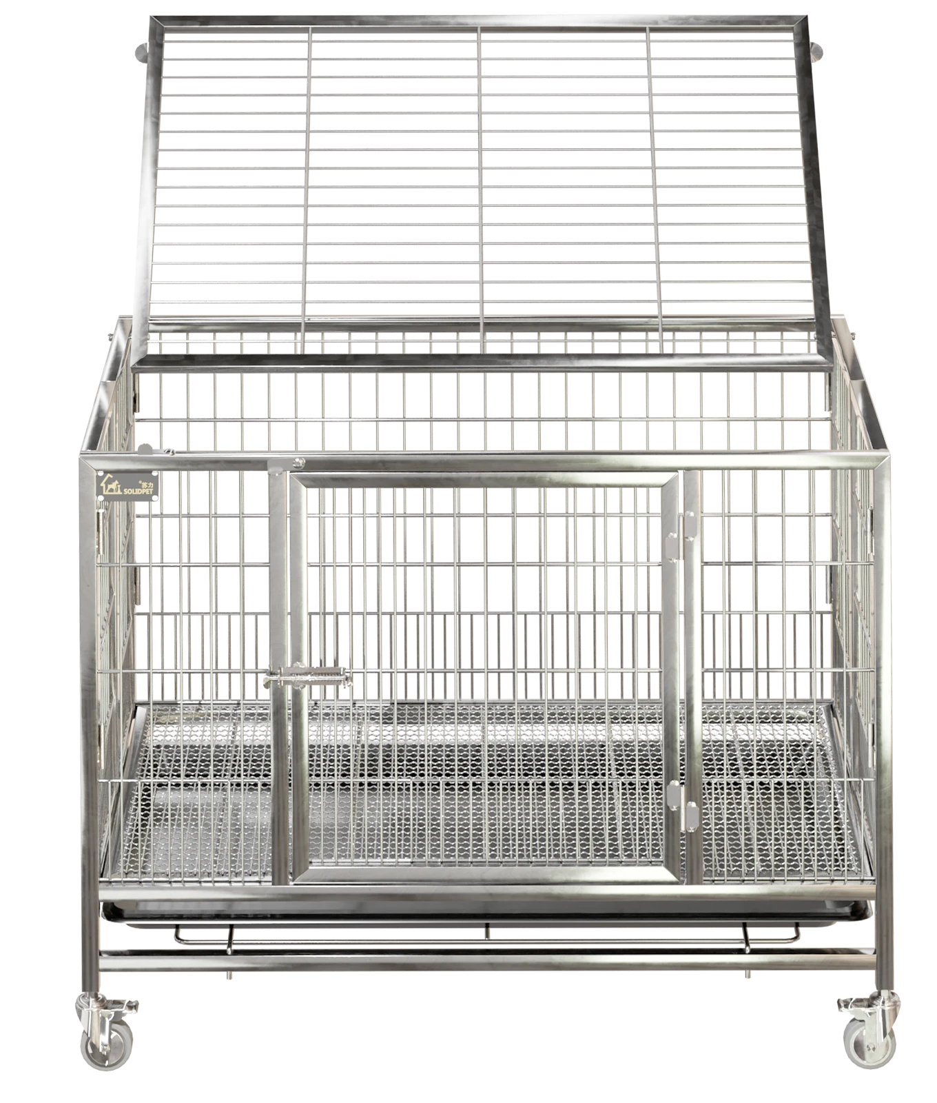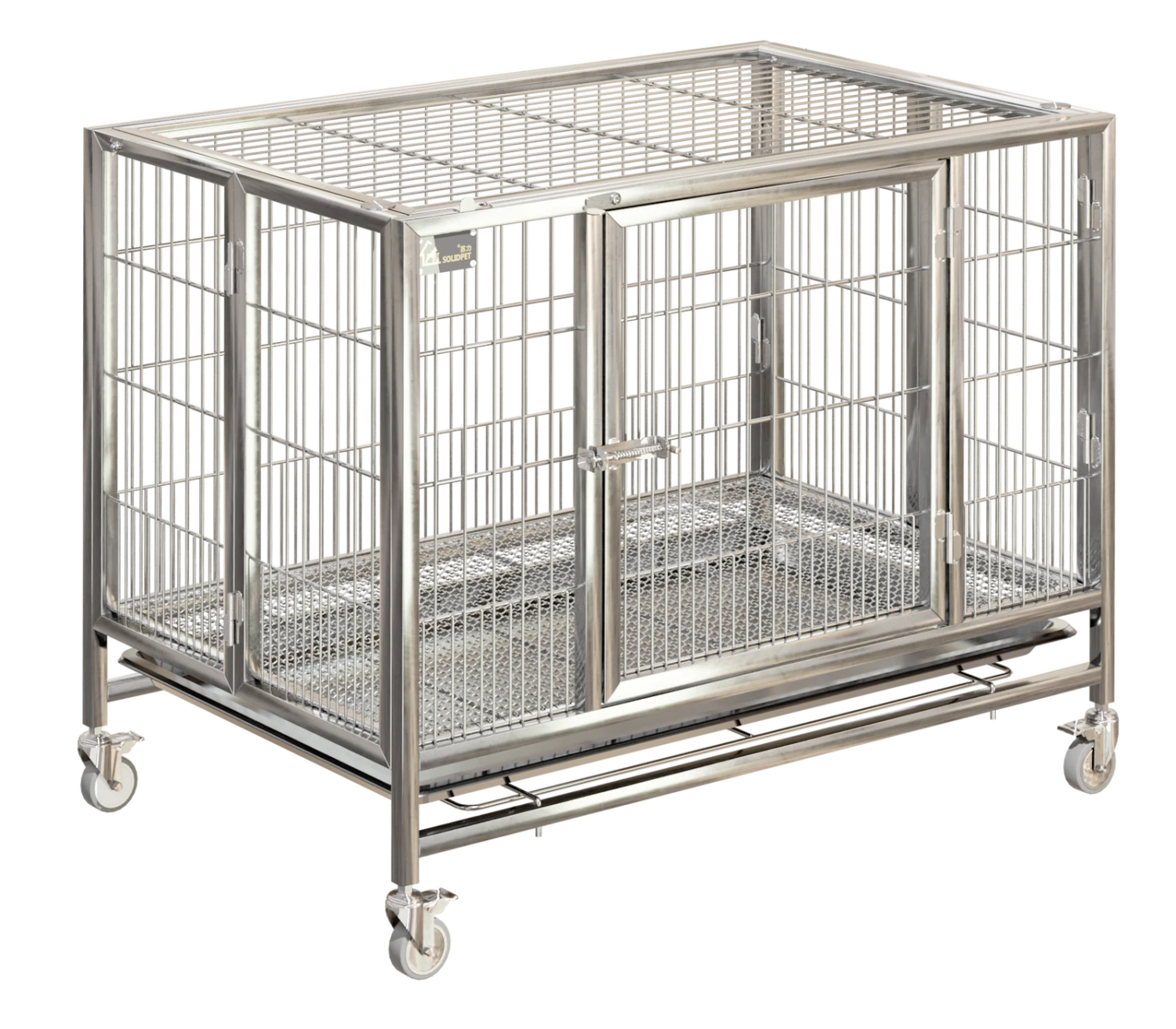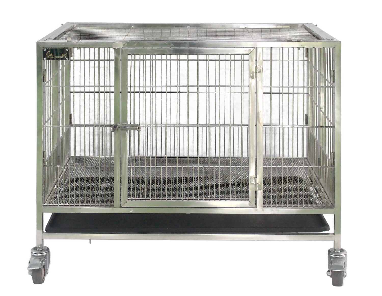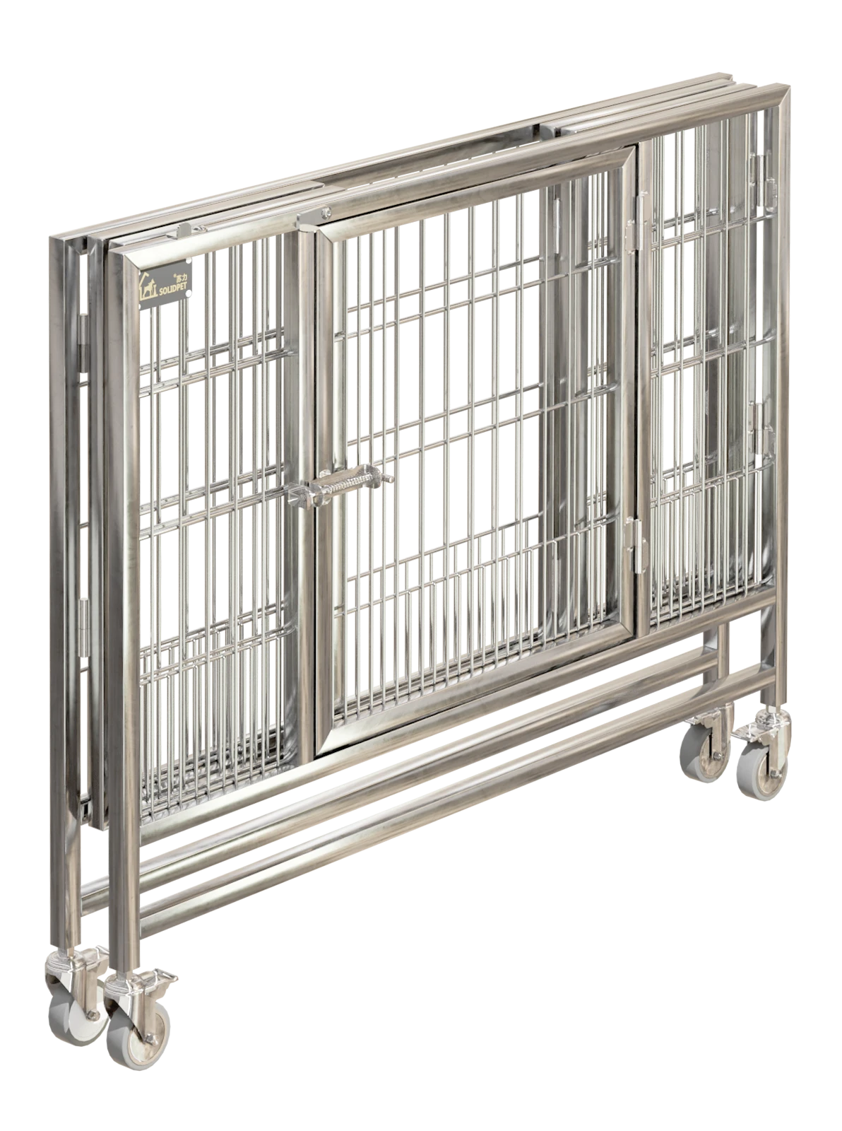 SolidPet Stainless Steel Foldable Dog Crate with Wheels